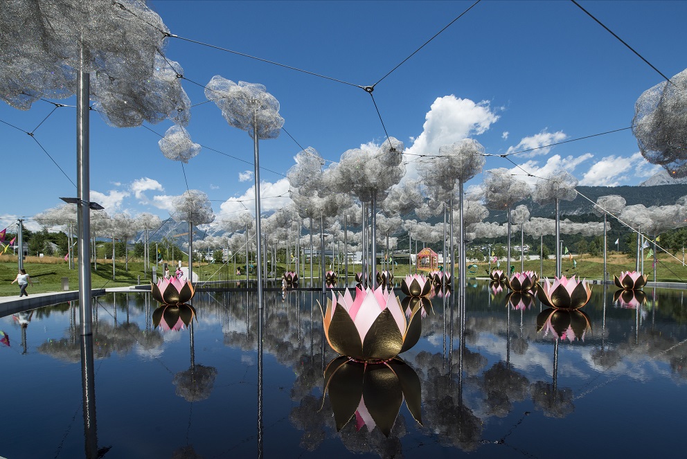 Così, nel corso dei due mesi del festival tutta l’area dei Mondi di Cristallo Swarovski si trasformerà quotidianamente dalle 8.30 alle 22.00 in un fiabesco mare di colori e di forme. Bandiere multicolori producono un euforizzante contrasto con il blu del cielo, sullo scintillante specchio d’acqua sotto la Nuvola di Cristallo galleggiano fiori di loto e creano un’atmosfera quasi meditativa.