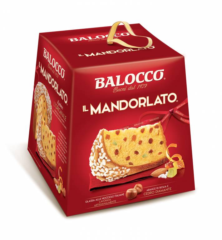La tradizione – Il Mandorlato® Balocco – il primo, l’originale, è il grande inconfondibile classico di casa Balocco, simbolo del Natale e vero capolavoro d’arte pasticcera, realizzato con solo lievito madre, latte fresco italiano, profumate scorze di arance candite di Sicilia, pregiato cedro Diamante e delicata uvetta sultanina. La guarnizione di deliziosa glassa artigianale alle nocciole è lavorata ancora oggi secondo la ricetta originale inventata da Balocco negli anni Cinquanta. Formato: 1000 g. Prezzo al pubblico: 6.59 euro
