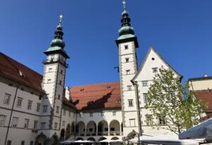 Landhaus, attuale sede del parlamento regionale, con la sua grande sala degli stemmi.