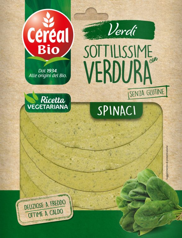 Sottilissime con spinaci – Deliziose a freddo, ottime a caldo appena scottate in padella e con un filo d’olio, le Sottilissime con spinaci Céréal Bio sono sottilissime fette di spinaci ideali come snack fuori pasto o vere e proprie portate per accompagnare un pranzo o una cena: sminuzzate in piccoli pezzi possono guarnire squisite insalate oppure accompagnare fantastici tramezzini! Sono un ottimo ingrediente per lasciarsi sbizzarrire in cucina. Ricche in proteine vegetali, senza glutine e preparate secondo una ricetta vegetariana sono un ottimo ingrediente per molte ricettazioni vivaci ed allegre.