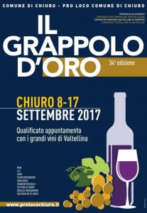 Chiuro (So), da 34 edizioni organizza il “Grappolo d’Oro” come qualificato appuntamento con i migliori vini valtellinesi. Così, dall’8 al 17 settembre, frammenti di storia, incontri col gusto, momenti di cultura, spettacolo e musica, faranno da sfondo alla principale protagonista della manifestazione,   costituita dalla viticoltura di montagna.