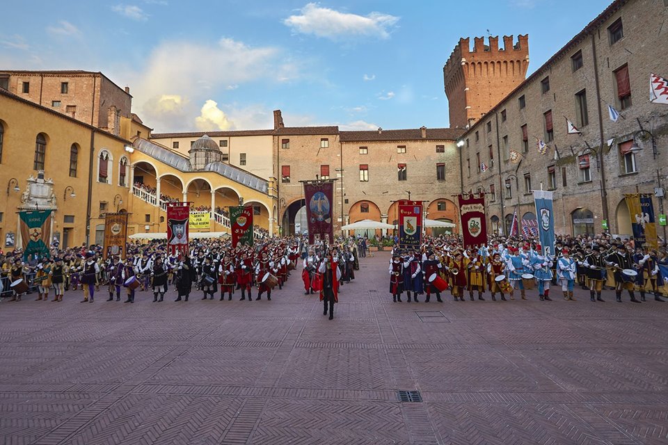 È il palio più antico del mondo, una tradizione lunga secoli, fin dal 1259 quando per festeggiare il marchese della città “Novello d’Este” si corse il primo palio della storia di Ferrara. Adesso il centro storico estense, che ha conservato intatta la sua anima rinascimentale, tra palazzi e monumenti che lasciano rivivere i fasti di corte, diventa a maggio il luogo di avvincenti corse cavalleresche, tra sbandieratori, danzatrici, cene d’epoca e coinvolgenti eventi. Maggio a Ferrara è il mese del Palio, che quest’anno celebra anche il 50°anniversario della rievocazione storica, organizzato dall’Ente Palio di Ferrara, con un programma ricco di sorprese, da vivere con il consorzio Visit Ferrara, che propone pacchetti speciali per il soggiorno nella splendida città dal Patrimonio dell’Umanità UNESCO.