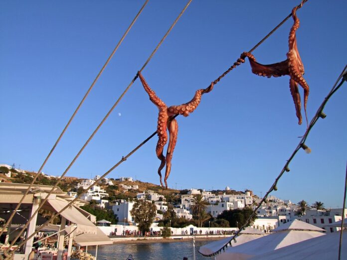 Così, nella splendida e vivace isola di Mykonos chi viaggia in gruppo può partecipare alla dimostrazione di cucina: in pratica si entra in una casa e si assiste alla preparazione dei piatti che costituiscono il pranzo preparato per i partecipanti. Mentre, un’alternativa sarà semplicemente mettersi a tavola, gustando subito all’arrivo un pranzo oppure una cena tradizionale. Chi vuole invece mettere alla prova la propria arte culinaria, oltre che assaporare la cucina, può entrare nella bella casa di Teta, in cui lei accoglie gli ospiti raccontando della cultura e della storia di Mykonos, mentre si gustano alcune meze tipiche, come dakos (una sorta di frisella con pomodoro e formaggio) e louza (filetti di maiale essiccati) e si beve vino e raki. Si inizia quindi la vera e propria cooking class,