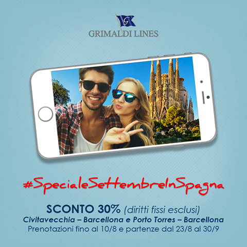 L’offerta prevede il 30% di sconto – esclusi i diritti fissi – sulle linee marittime Civitavecchia-Barcellona e Porto Torres-Barcellona e viceversa, esclusivamente per prenotazioni effettuate dal 1 al 10 agosto 2017 e per partenze comprese tra il 23 agosto ed il 30 settembre 2017.