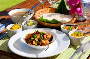 Allora, ecco un piccolo vademecum sui principali piatti locali: innanzitutto, carne, pesce e frutti di mare sono in genere serviti con il curry, oppure in vindaye, una salsa di zafferano e mostarda, o in rougail, una salsa piccante a base di pomodori, peperoncino, zenzero, cipolle, aglio e sale. È abitudine accompagnare i piatti con riso in bianco, achard (un condimento a base di frutta e verdura tritata e pepata) oppure chutney (a base di frutta e verdura, con peperoncino, coriandolo, aglio e cipolla). Il pesce è