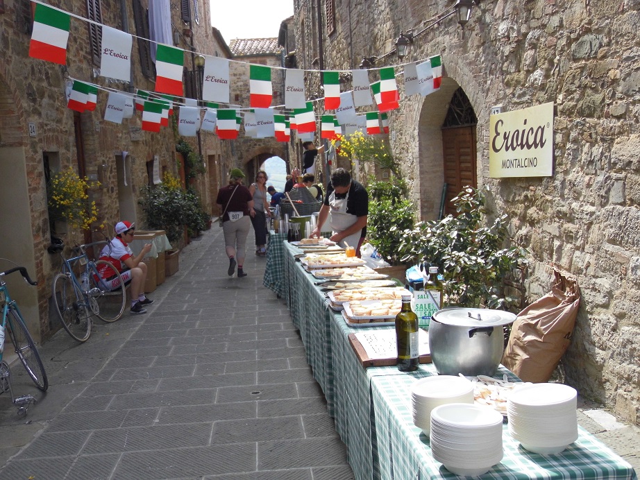 Invece, tra Gaiole in Chianti e Montalcino, nel cuore della Toscana, ecco che da 21 anni, vive e pulsa una manifestazione d’altri tempo: L’Eroica, una cicloturistica d’epoca, non competitiva, in cui il rapporto tra uomo e bicicletta d’antan genera un connubio difficilmente replicabile altrove. A Montalcino, insieme a questa corsa senza eguali, è stato proposto anche un festival o per meglio dire una festa; infatti, sono stati organizzati tre giorni (25-25 maggio), all’insegna di musica, teatro, cultura e giochi di strada tutti elementi di contorno, che calzavano come un guanto l’evento principe de L’Eroica e lo strumento di corsa e fatica: la bicicletta. Così, mentre Giancarlo Brocci ha continuato a parlare di un sogno per essere riusciti, partendo da una emozione diventata realtà, non solo a consolidare l’evento, ma di portarne i sentimenti e lo spirito in giro per il mondo, il direttore artistico di Eroica Montalcino Festival, Andrea Satta ha disegnato l’evento impegnandosi ad esaltare il fascino ed i valori della bicicletta.
