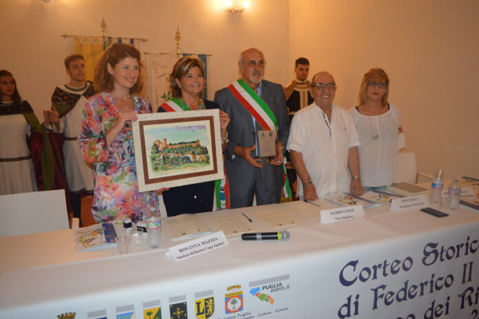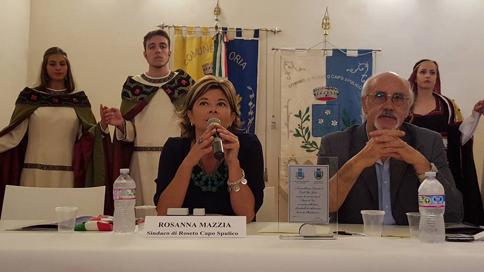 Puglia e Calabria sempre più vicine. Infatti, sotto i buoni auspici della rivista di turismo e cultura del Mediterraneo, Spiagge, diretta da Carmen Mancarella, che ha messo in contatto le due realtà, sarà il Comune di Roseto Capo Spulico (Cs) a donare il Palio al Torneo dei Rioni di Oria. Lo ha annunciato nel corso del recente incontro di presentazione, la sindaca della bella cittadina calabrese, Rosanna Mazzia. Così, per l’occasione è stato sottoscritto con il Comune di Oria, rappresentato dal vicesindaco, Egidio Conte, un protocollo d’intesa che avrà la durata di tre anni e che prevede la promozione e la valorizzazione reciproca delle due realtà territoriali accomunate da Federico II.