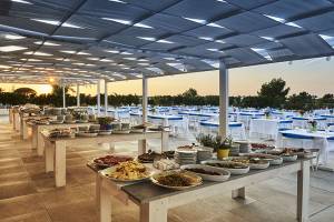 pensione completa a buffet con bevande incluse, serata pugliese con cena tipica, serata italiana e cena elegante, light breakfast presso il bar ed Open Bar.