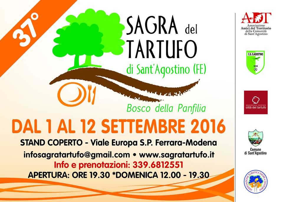 Sant’Agostino, popolosa cittadina situata nella pianura ferrarese, dal 1 al 12 settembre 2016, chiama a raccolta tutti gli amanti del tartufo bianco nella suggestiva cornice del bosco della Panfilia. Il paese ubicato nella parte settentrionale della Panfilia, fa parte dal 2009 dell’Associazione Nazionale Città del Tartufo: