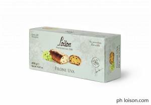 Filone alla frutta – Il gusto classico del Filone Loison è quello alla Frutta, arricchito con mandorle, uvetta sultanina, scorze di “arance di Sicilia” e ricoperto di glassa alle mandorle e granella;
