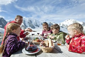Berghaus Diavolezza, la cena a base di fonduta di formaggio e il pranzo al sacco durante l’escursione. I prezzi a persona partono da 185 CHF (ca. 172 euro) a seconda della categoria della camera e includono il trasporto in funivia, il trasporto bagaglio dalla stazione a valle e il parcheggio. berghaus@diavolezza.ch