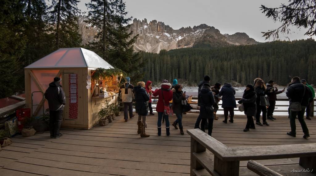 Negli ultimi weekend dell’anno, fino al 17 dicembre 2017, il mercatino natalizio riflette nelle acque del Lago il suo scenario colorato e fuori dal tempo. Chi si aggira per quelle che sembrano le strade strette di un piccolo villaggio comparso dal niente, si imbatte in casette di legno che ricordano la forma di grandi lanterne, prodotti tipici regionali e artigianato, sculture di ghiaccio e neve che rievocano le leggende dolomitiche, stufe a